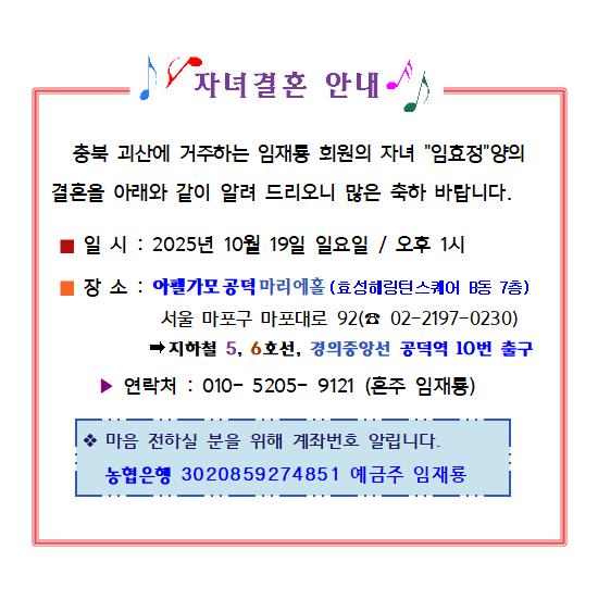(결혼) 임재룡 회원 자녀 결혼 안내