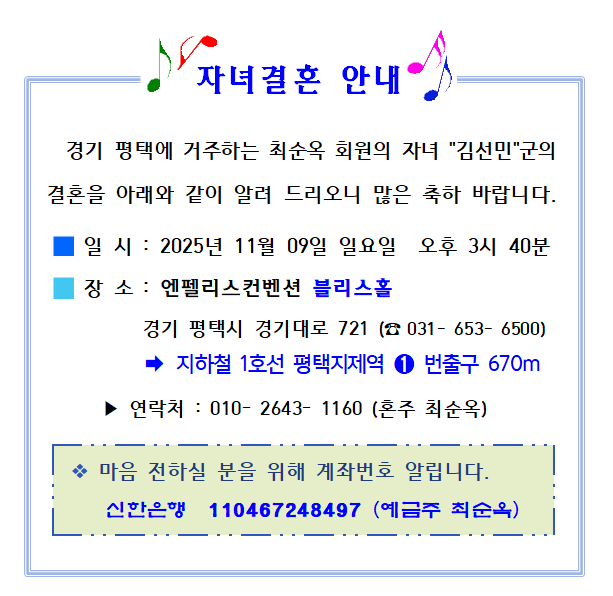 (결혼) 최순옥 회원 자녀 결혼 안내